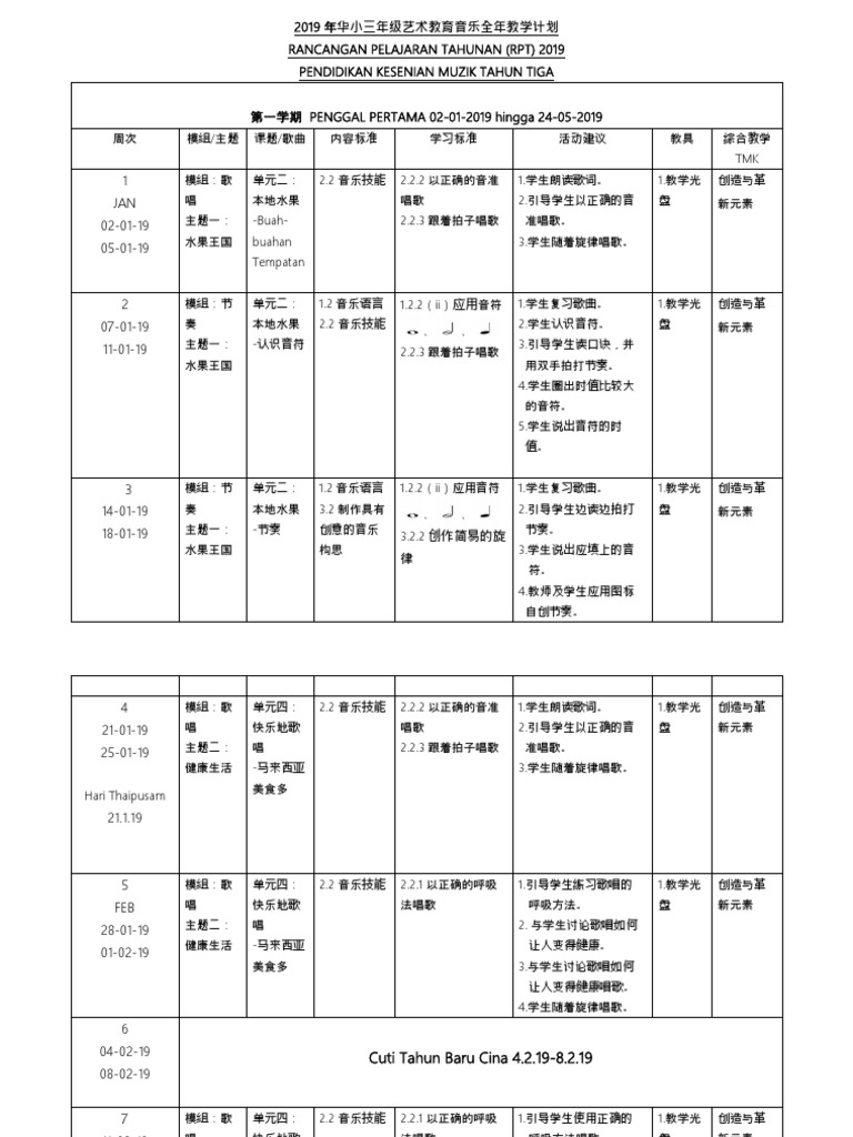 Rpt Muzik Tahun 3 2019 / Menyanyi lagu yang digemari tekanan13, mari 1.2 menyanyi dengan b.. Rancangan pengajaran tahunan (kssr) semakan pendidikan kesenian tahun 2 (muzik) minggu. Minggu tarikh topik bidang pembelajaran standard kandungan standard rancangan pengajaran tahunan (rpt) tahun 3 2019 tahun 3. Rpt pendidikan muzik tahun 3 1. Pendidikan muzik tahun 3 unit 1 : Diolah mengikut kesesuaian kelas dan tahap pencapaian murid.